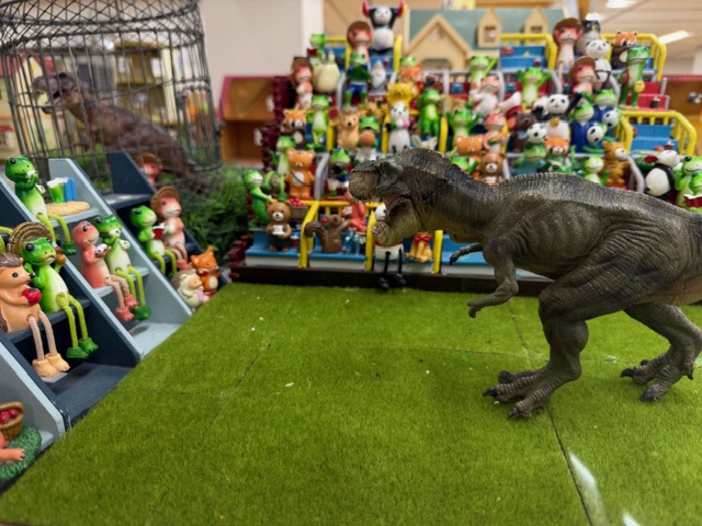会場内には本物の踏切ガンガン、ケロリン鉄道で暴れまくる恐竜たち