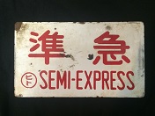 「急行/急行 指定席」 ○青 ホーロー板・赤浮文字 縁錆有 状態優 (純正品保証) (盛岡店) |