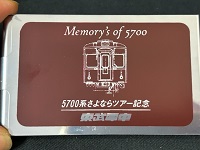 【記念品セット】 「5700系さよならツアー記念」 東武鉄道株式会社 定規・カード入 外箱付 未使用 |