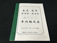 【車両編成表】 「東急 電車 鉄道線・軌道線ポケット 車両編成表」 2001燃5月11日現在 鉄道友の会 東京支部 B6サイズ/15P ホッチキス留 裏表紙角折有 状態 優 |