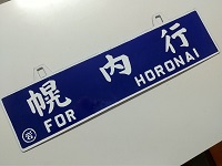 「岩見澤行〇岩/幌内行〇岩」 ホーロー紺厚板 白彫文字 サイズ/18.0×60.0㎝ 状態優 |