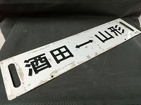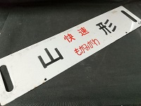 | 「快速月山 山形⇔新庄 /酒田⇔山形」 ホーロー板製 浮き文字 カタ テープ痕有 状態優 |
