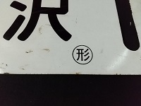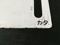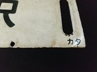 | 「快速仙山 山形⇔仙台 山形~作並 各停/ 快速仙山 仙台⇔山形 カタ」 ホーロー/浮き文字 14×60cm 状態 優 使用による傷・汚れ 貼り痕有 |