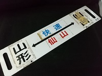 「快速仙山 仙台⇔山形 作並~山形 各停/ 快速仙山 山形⇔仙台」 ホーロー板 浮き文字 カタ テープ痕有 状態優 |