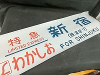 | 「急行 箱根湯本⇔新宿/ 急行 新宿⇔箱根湯本」 サイズ/14.7×51㎝ アルミ製/塗版 小田急 状態 優 使用による傷・汚・剥有 |