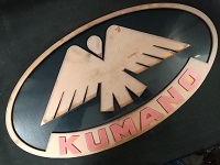 「旧・熊野交通」 バスエンブレム 樹脂製 サイズ/25.2×48.0㎝ 使用による汚れ、色褪せ、キズ有 状態優 |