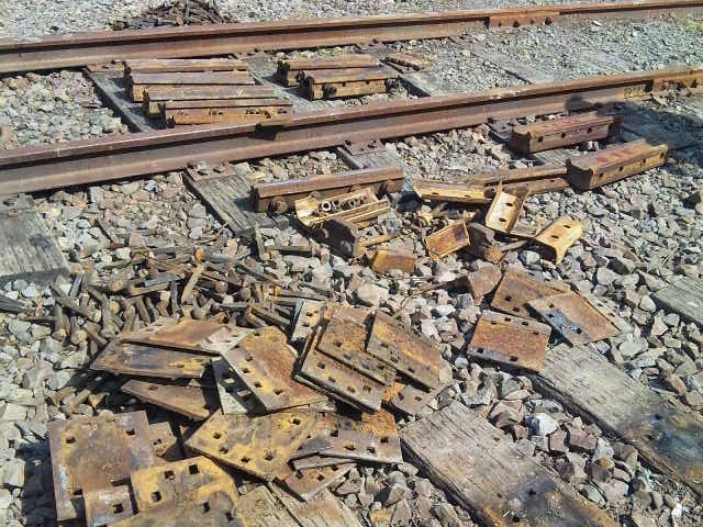 | 今年も地元、富樫組のみなさん方にお世話になりました 発着ターミナルの3番線化には追加でポイント2基が必要となる そこでクロフォード公園奥の幾春別側ポイントを移設する事になった 三笠駅に蒸気時代駐泊所があって転車台や給水塔へ向かう引き込みに使われていたものだが廃止後は草に深く埋もれていた ポイントは動いてこそポイント 新たなる活躍の場へ完全移動することになった まるごとを考えるも1基25mもある為分解組立てとなった |
