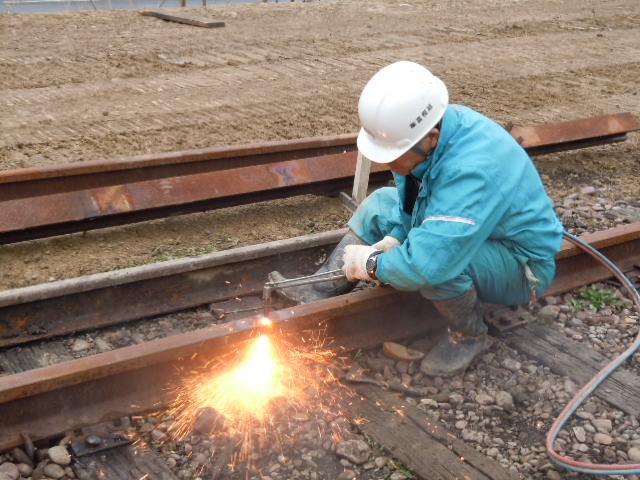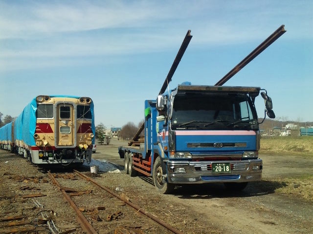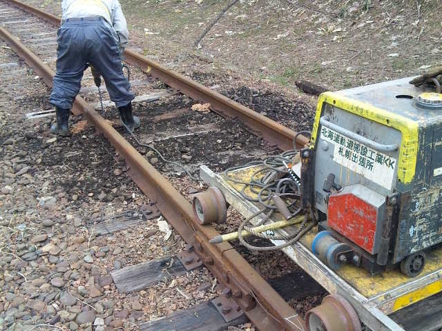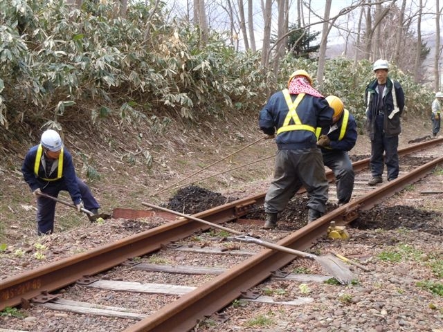 | 鉄道記念館構内枕木交換より一足早く 旧幌内線本線の枕木工事に取り掛かりました JR保線業務で超多忙の中、北海道軌道のみなさん方が いろいろな武器をいっぱいもって来て頂きました 枕木の劣化も気にはなるものの その武器にどうしても目は釘付け 「自分なりにも相当きてるな」と視線が違う事を自覚 とにかく交換までが早い ベンラン職員が新人に罵声を浴びせながらの指導は 今の時代見られなくなった職人道を見たような・・・ ひぃ〜っと言っていたあの若者たちも 何れは一人前になってオマエな〜ってなる事を期待 お蔭様でSカーブの軌道修正も出来ました |