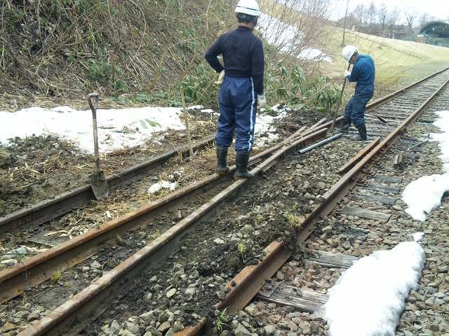 | 本線枕木交換工事(40本交換しました) 2011/04/21 | ||