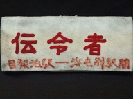 【腕章】 「伝令者」 表/フェルト生地・貼文字 裏/綿生地 紐有 目梨泊駅-浜頓別駅間と記入有 状態 良/汚有 |