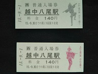 【記念硬券入場券】 「越中八尾駅」 普通入場券2枚組 15.9.1 JR西日本 状態 優 |