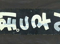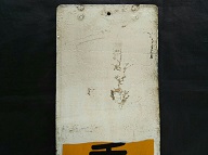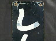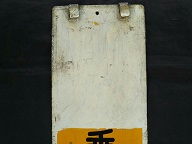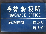 | 【案内板】 「手荷物扱所」 木製 昭60.1.5作 29.4×45×2.4cm 状態 優/穴・割有 裏面に将棋用の升目有 |