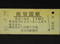 | 【硬券入場券】 「南岩国駅」 山陽本線 昭56.7.25 110円 南岩国駅発行 状態 優/若干焼有 |