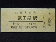 【硬券入場券】 「武田尾駅」 福知山線 昭61.7.31 140円 発行駅記載無 状態 優/焼有 |