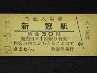 【硬券入場券】 「新冠駅」 日高本線 昭50..5/日にち不明 30円 新冠駅発行 状態 優/焼有 |