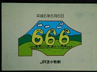| 【記念硬券入場券セット】 「6・6・6/ムツムツムツ」 スーパー北斗デビュー記念/苫小牧駅 3枚セット 平6.6.6 苫小牧駅発行 JR苫小牧 台紙/25.7×18cm/二つ折 状態 優 |
