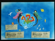 【記念自動車航送切符】 「青函連絡船自動車航送10年」 JQUW 津軽丸柄 青森−函館 状態 優/若干焼有 (見本) |