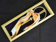 【テープカット用記念ハサミ】 「根岸線全線竣功・開業記念」 昭和48年4月9日 ハサミ/20.5×7cm/金メッキ 木箱入/25.2×9.1cm 熨斗付 日本国有鉄道東京南鉄道管理局 日本鉄道建設公団東京支社 横浜市/鎌倉市 状態 優 |