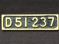 【記念SLミニプレート】 「D51237」 砲金製 1.6×5.8cm 状態 優/若干欠有 |