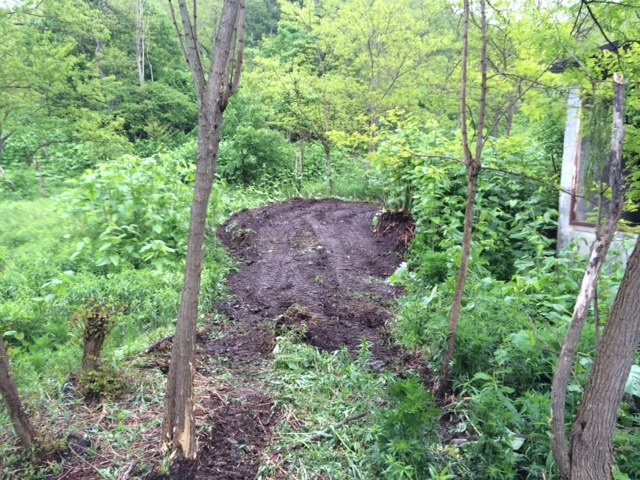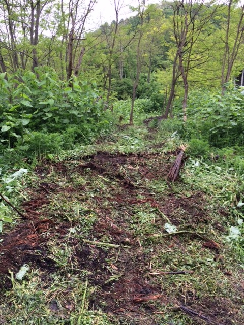 画像地点が唯一の候補地 強烈な斜面だが何もない事を願って、道を拓く作戦の開始である