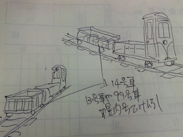 | ↓13号車 丸太トロッコ「北星号」 | ↓14号車 「月光号」 | ↓15号車 「■■号」 | ||||||||||||||||||||||
