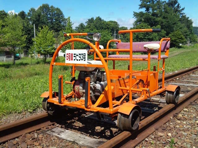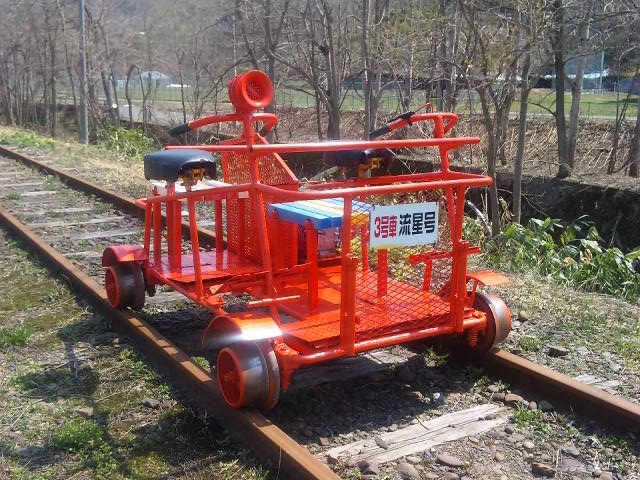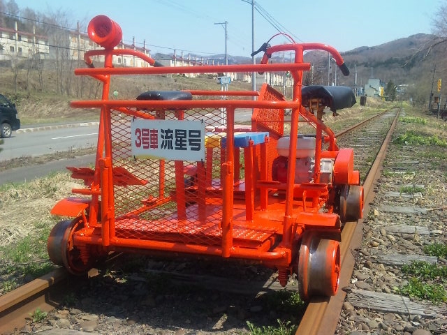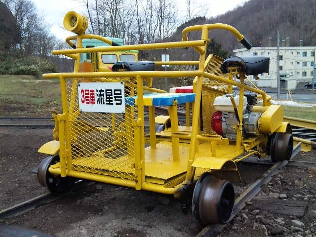 | 市内の美しい町名「幌内北星町」から命名 その名の通り満天の星空が望めるところです 台車は国鉄時代に活躍した払下品で 本物の平トロです 台車部だけでも800Kgの本格派 チリンチリン素敵なカウベル装備 ⇒丸太トロッコ製作記録 OTOGI WORKS改造 |