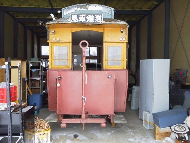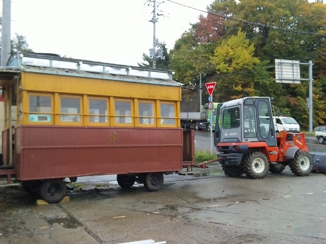 | 函館市交通局よりの移籍車両です 名物ハイカラ号を模した交通局製のタイヤバージョン 軌陸両用車両に改造して トロッターミナル1番線に配置 駅待合室としてご利用頂く予定です OTOGI WORKS改造 |