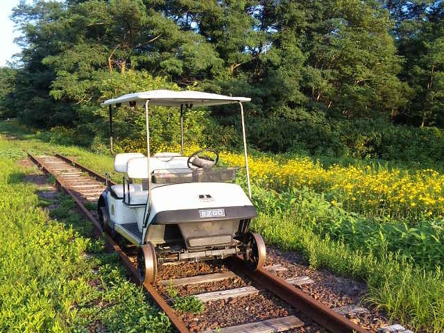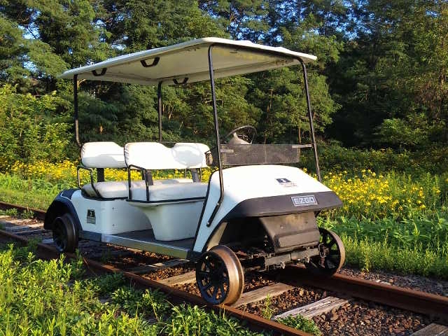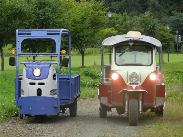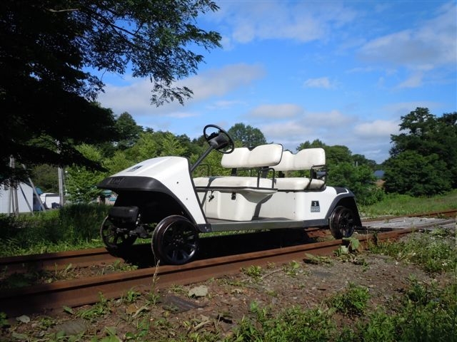スタイリッシュなフォルムは その名も「アルカディアサルーン号」 贅沢な白い革張りシートとショックアブソーバーは 最高級品 いっそう開放感を感じさせてくれます (トロッコ界のセルシオ・・・?) 米国EZGO社製エンジン搭載3〜4人乗り 電磁式遠心オートマチック車後進付 フットブレーキ・パーキングブレーキ OTOGI WORKS改造 |