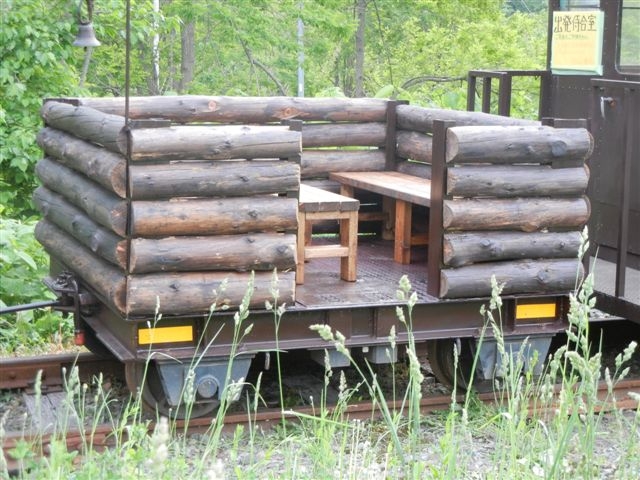 | トロッコ列車B編成専用車として登場しました 3人掛け4列座席の展望トロッコは開放感抜群です OTOGI WORKS改造 |
