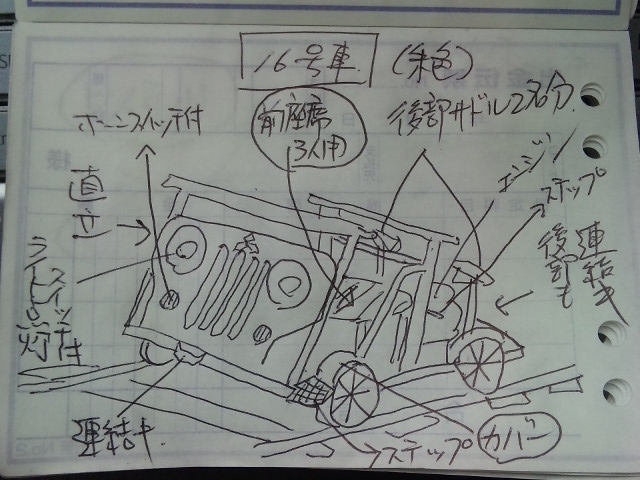 | ★2013お盆にデビュー★ ゲテモノ一族の中でも異色の存在 車輪はついているが 線路を走らない 局長がよく朝の散歩に連れまわしてる みんなは通称「ポチ」と呼ぶ(ペット化している) 恐ろしい構想の旗頭に化けるかも・・・乗車記念写真OK OTOGI WORKS改造 |