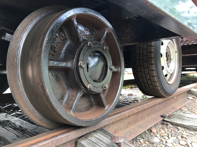 台車は国鉄時代に活躍した払下品で 本物の平トロです 台車部だけでも800Kgの本格派 |