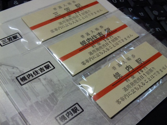 ![]() ![]() ![]() 幌内線復活記念「復刻記念入場券」限定1000組販売/売切次第終了 (特製台紙に10円赤帯3種/三笠駅・幌内住吉駅・幌内駅 販売価格1080円) 三笠鉄道記念館と三笠トロッコ鉄道幌内太駅(カラマツトレイン三笠店)で販売中 |