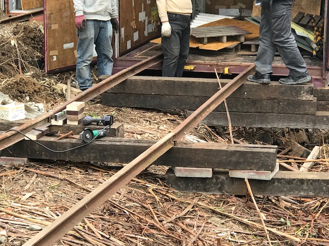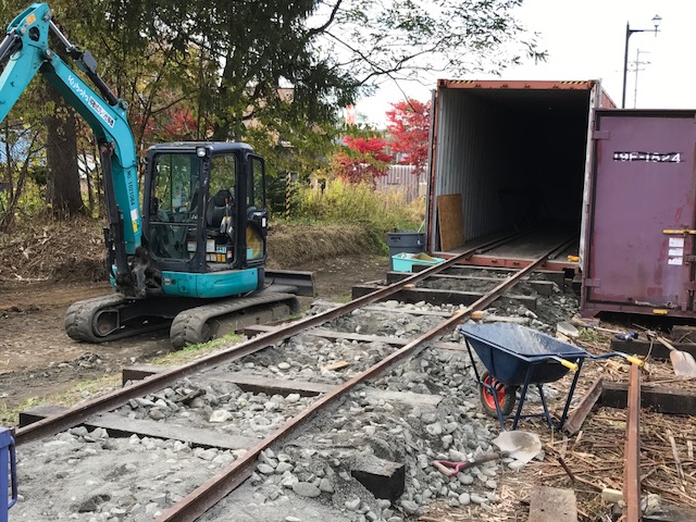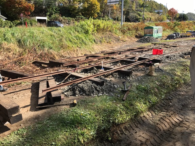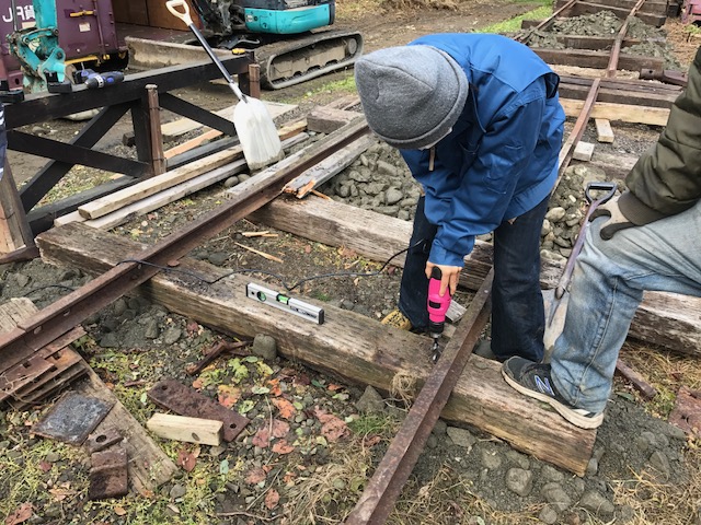 まだアブがブンブン飛んでる頃、三笠トロッコ鉄道では連日次年度の計画でブンブンしてた お蔭さまで乗客数10万人を前にして更なる北海道型定期観光鉄道とはと悩みまくってた・・・ 2階建てにするか?檻を付けて熊を放つか?いやいや鹿を撃ちまくるか? と現実味のない遠い方向に行ってばかりだった 頭を整理しよう! 鉄道記念館構内への接続を果たした事により飛躍的に乗客数が増えた どっかのNPOと違って 金をもらってやっているわけじゃない 収益があってこその維持継続である 自前で稼ぎそれをつぎ込む それを可能にするには・・・ そうだ!ある牧場から問題ありながら当時3000万以上もしたフル編成を頂いたじゃないか そうそう基本は素晴らしい北海道の景色と空気それに開放感を満喫だよな SL列車を走らそう! とかく人は飛び道具に頼りすぎると実感 それはそれはナイスだが冷静に考えれば 相当の整備とフル編成に匹敵するぐらい費用がかさむ だがカラマツトレインはここからが違う 基本そんな余力はない ないなら知恵と体を使う 至ってシンプル 開業前にちょこっと整地整備見積もり依頼をしたら800万ぐらいの紙が 理想を形にしようとすればザックリ2000万ぐらいの請求書がくるだろう こんな悪だくみが交差しながらまともな計画が練りあがる この工事は3大まつり出発前に実施されたものだ 次年度初日からSL編成を動かすべく腹が決まったら動きは早い 原則全て自前で工事しよう 怪しい図面らしきを頼りにまずはトロッコターミナル駅の留置線延長にとりりかかる 出ました三笠名物60屯マジンガーZ さずかにデカイ コンテナをあっちにこっちにセンチ単位で決めてくるおそろしく高性能だ まずは車庫を目いっぱい後ろに下げる 路盤をつくり 線路を足す 言うほど簡単にはいかない 枕木はJRがらみで旭川から直送 ランクは4段階で値段もガッツリ違う 砂利もピンキリ構内奥だからなるべく安めで対応 みんなでやるやる レールは三井芦別から譲って貰って埋めてあった奴を再利用 ヘンダーで曲げも直す か細いお姉さん名物車掌ながら私もやるーっと犬釘リードをドリルでするする この後ハンマーで犬釘も叩いてたが当然おじさん達がやり直し 枕木と砂利でピッチをとるが誰が考えたかシンプルながら凄い相性だ まるで鉄道連隊の如く全てはレールに合わせる こんななんでも鉄道隊員募集中 来年あえて脱線希望の諸君求む かくして7日間にて路盤地形敷設完了 一冬寝かせ雪解け後再整備 一夜にして地面は固まらない 自然に教えてもらう 紹介しきれなかった三笠のやる気改めてご紹介しました 来春、乗車定員52名 初音編成とは別にSL編成(ミカサ97号車)としてインチキ煙を吐きながら ヒィーっと汽笛と共に走る予定です 東京・名古屋からの日帰り弾丸トロッコ等も出来たらと考えています ついでに道路脇まで側線で降りてこれるようにも整地しちゃいました さらなる車庫群やカフェなんか出来たらいいな・・・ 【2017.12.4】 |