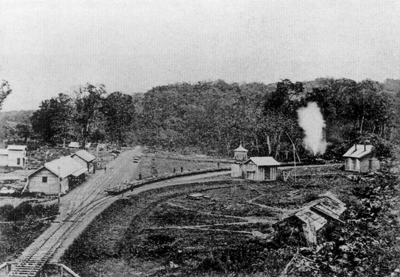 昭和19年からは(三笠駅)、明治15年開通当初は(幌内太駅)と呼ばれた当時を物語る有名な三角線(方向転換用)を備えた構内だった 右端の煙を上げている蒸気機関車あたりがトロッコ鉄道用の 旧三笠駅となります(画像は明治時代) お車・観光バスは⇒専用駐車場をご利用下さい 約300台(無料) トイレ完備です |