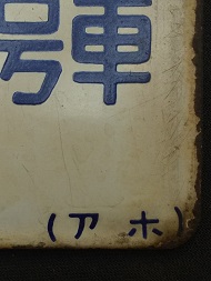 | 4 所属○青 ホーロー板・黒浮文字 タテヨコ15p 煤付 状態優 |