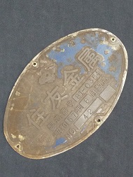 住友金属 製造番号81-0384 昭和57年8月製造 42 裏面「3024#1」黒マジック 書込有 真鍮製 タテ10×16p:留穴4ヵ所 塗装剥有 状態良 |
