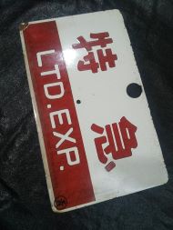 「特急 〇青 特急 〇青」 LTD.EXP 自由席 端欠け有 ホーロー板製 サイズ/24.4×14.4cm 状態優 |