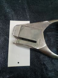 「検察鋏+ケース付」 〇T 岩田製 T90 記載有 ケース革製 ケース裏/60記載有 ケースサイズ/6.5×12.4×3cm サイズ/11×4×1.5cm 状態優 |