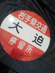 「大迫停留所」 岩手県交通 鉄製 サイズ/直径36×厚さ01cm 状態優 |
