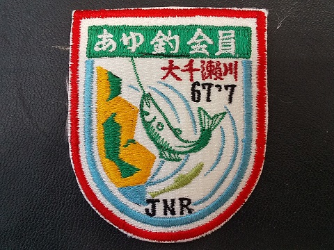 | 記念品ワッペン 「あゆ釣会員 大千瀬川 67‘7」 ・1967年7月 ・国鉄 ・刺繍ワッペン/ 安全ピン付 ・8.5p×7p ・若干ほつれ有 ・状態 優 大千瀬川は愛知県北設楽郡 から静岡県・天竜川へ 流れる河川です。 ワッペンの通り、 あゆ釣りが盛んです。 |