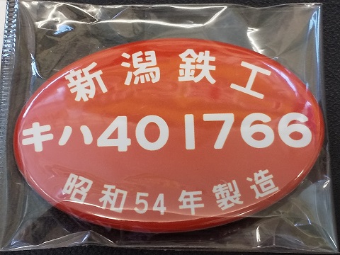 記念品缶バッジ 「新潟鉄工 キハ40 1766 昭和54年製造」 ・製造元不明 ・バッジ:4.5×7p ・発送時:10.5×6p (袋入) ・未開封 |