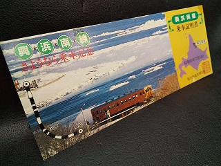 乗船証明書 「青函連絡船/ 羊蹄丸最終便」 ・昭和63年3月13日 ・26×18.8p ・船長自筆サイン ・中央に「JR」の 浮文字 ・表面は波模様の加工 ・状態 優 |