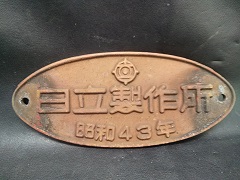 【楕円銘板】 「日立製作所」 ・昭和43年 ・26×11.2p(最大) ・使用感有 ・留め穴部分塗装剥、 欠有 ・裏面塗装のヒビ、剥 |
