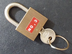 | 【錠前】 「NO.3」 東京・岩田製作所製 鍵付/開錠可 全体:縦8p×横3p ×厚2p 若干汚れ有 使用感抜群に有 状態 優 |
