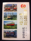 【北陸鉄道株式会社 創立60周年 平成15年10月13日 記念乗車券】 日付入硬券全12枚 B5判縦折込4P 若干反/擦有 状態優 |