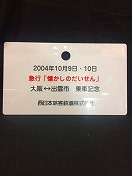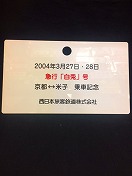 【白兎○米】 プラ赤帯板 2004年3月27・28日 急行「白兎」号 京都⇔米子 乗車記念 西日本旅客鉄道株式会社 若干ヤケ有 状態優 |