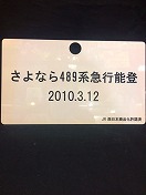 【能登】 プラ赤帯板 さよなら489系急行能登 2010.3.12 JR西日本商品化許諾済 裏若干ヤケ有 状態優 |
