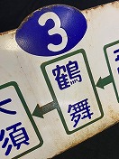 【市電側面取付用】 名古屋市電3系統 名駅〜平田町〜鶴舞〜 大須〜名駅間のサボ 行先両面上部系統表記 3系統ホーロー白板 緑、赤、青浮文字 ホーロー欠錆反有 状態使用痕共に極上 |