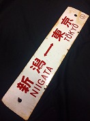 【新潟⇔東京○上/ 新潟⇔上野○上】 ボンネット特急「とき」用 赤サボ 使用によるホーロー剥、擦 錆、端一部曲有 状態使用痕共に極上 |