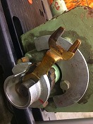 【日本エアブレーキ】 蒸気機関車本体に ブレーキをかけるのが 単弁ハンドル 扱いやすいように 柄の部分に現場で 加工がほどこされた 特殊タイプ 砲金製 使用による当たり傷 状態使用痕共に極上 |